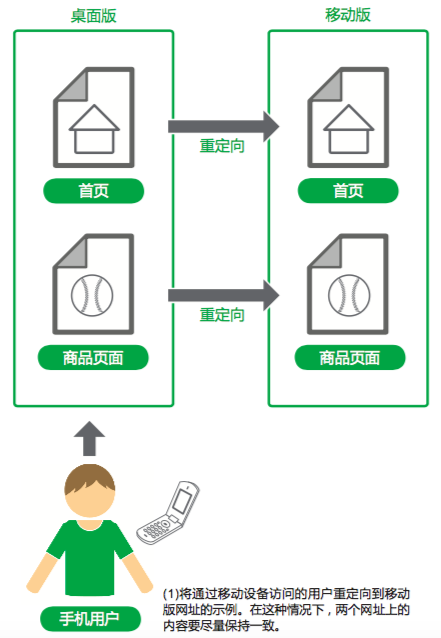 Nếu bạn đang chuyển hướng người dùng, hãy đảm bảo nội dung trên các URL liên quan trên thiết bị di động/máy tính để bàn càng nhất quán càng tốt (1). Ví dụ: nếu bạn điều hành một trang web mua sắm trực tuyến và người dùng truy cập phiên bản máy tính để bàn của trang web đó trên điện thoại di động, hãy đảm bảo chuyển hướng người dùng đó đến phiên bản di động của cùng một sản phẩm, chứ không phải trang chủ của trang web di động. Đôi khi, chúng tôi thấy một số trang web cố gắng sử dụng các chuyển hướng như vậy để cải thiện thứ hạng tìm kiếm, nhưng cách làm này chỉ tạo ra trải nghiệm người dùng kém, vì vậy vui lòng tránh bằng mọi cách.